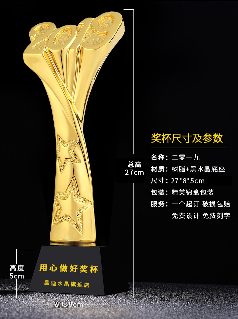 二零一九 鍍金獎杯 創意獎杯專業定制 企業員工頒獎禮品訂制