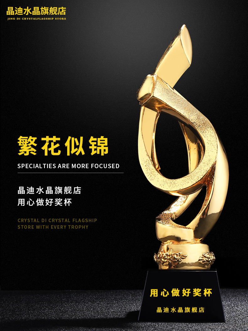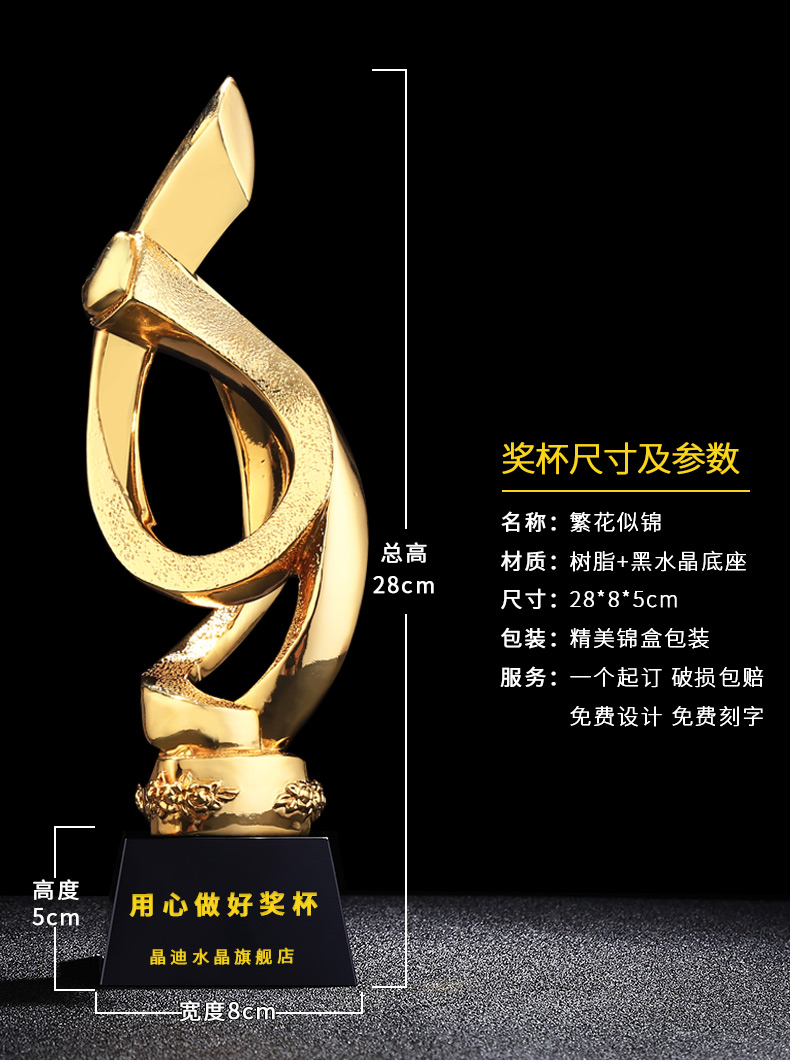 繁花似錦 鍍金獎杯 創意獎杯專業定制 企業員工頒獎禮品訂制