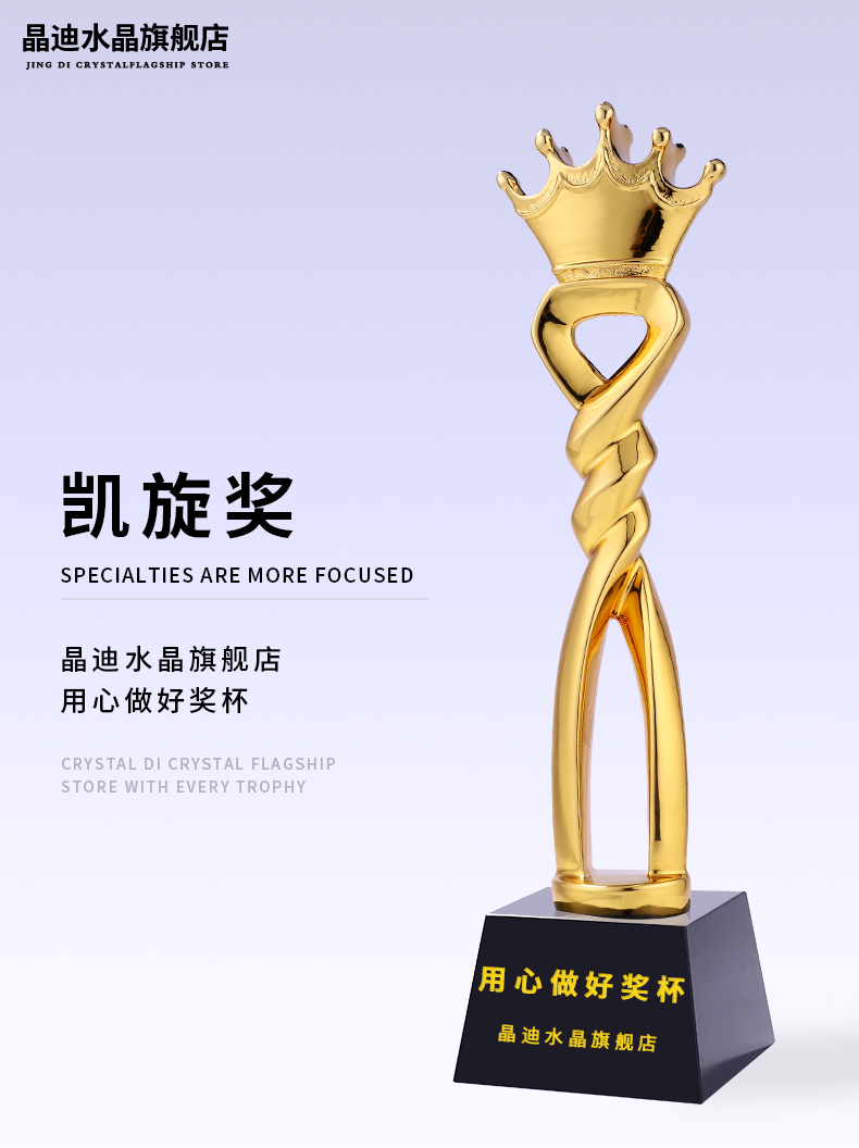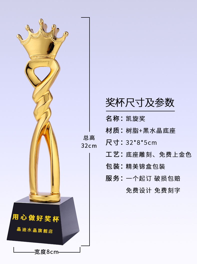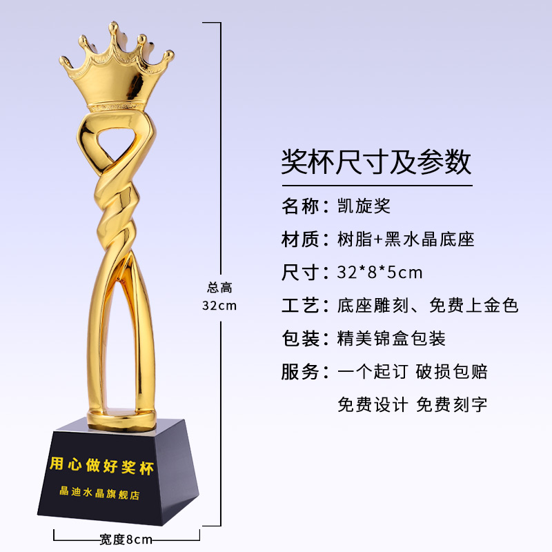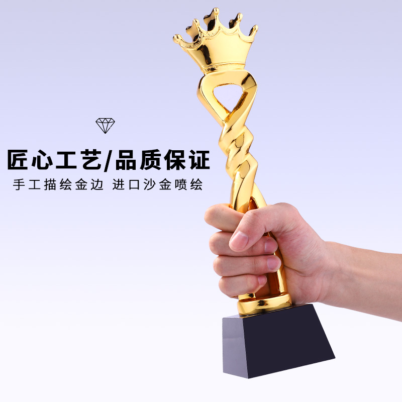 凱旋獎(jiǎng)鍍金樹脂獎(jiǎng)杯定制創(chuàng)意愛心奉獻(xiàn)皇冠心形刻字獎(jiǎng)杯定做