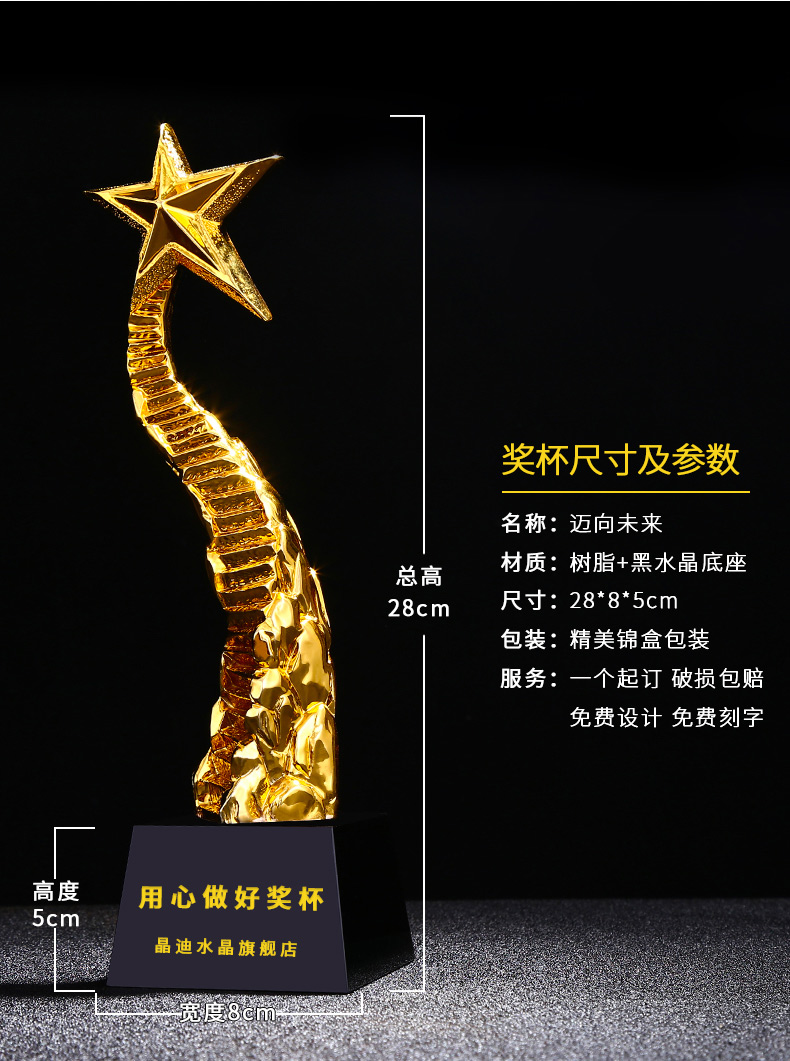 邁向未來(lái)鍍金獎(jiǎng)杯 創(chuàng)意獎(jiǎng)杯專(zhuān)業(yè)定制 企業(yè)員工頒獎(jiǎng)禮品訂制