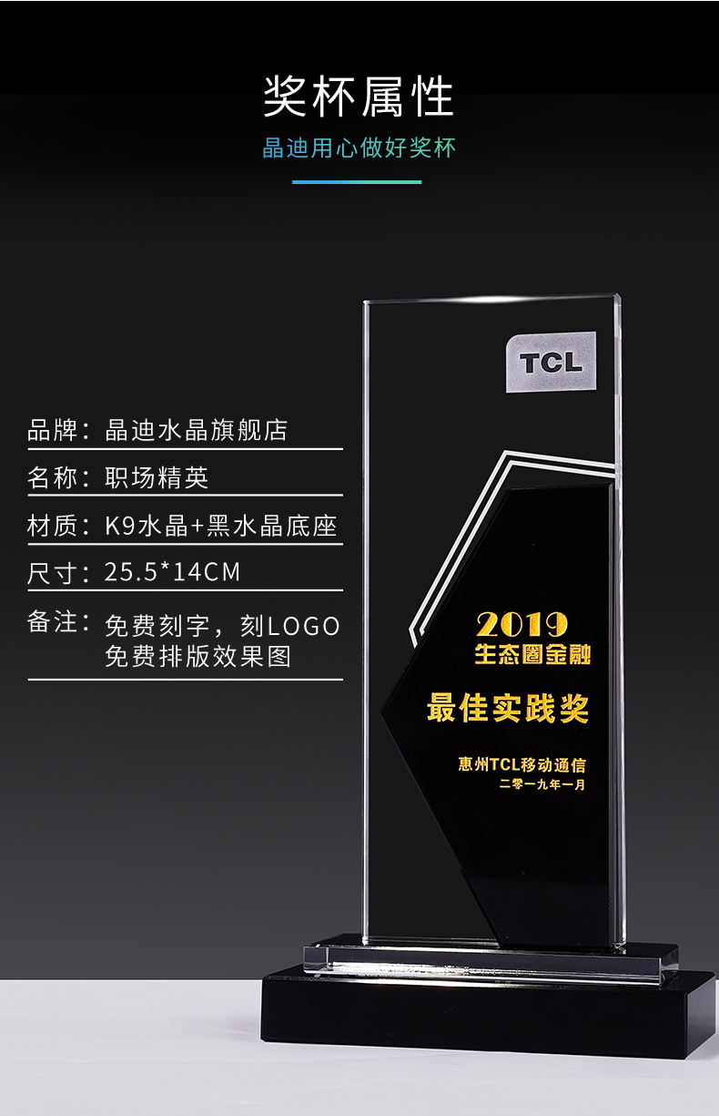 水晶獎杯定制定做刻字創意授權牌牌匾公司企業員工頒獎禮品紀念品