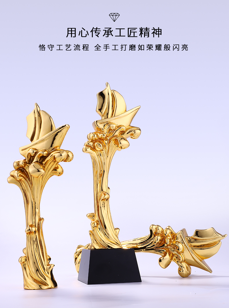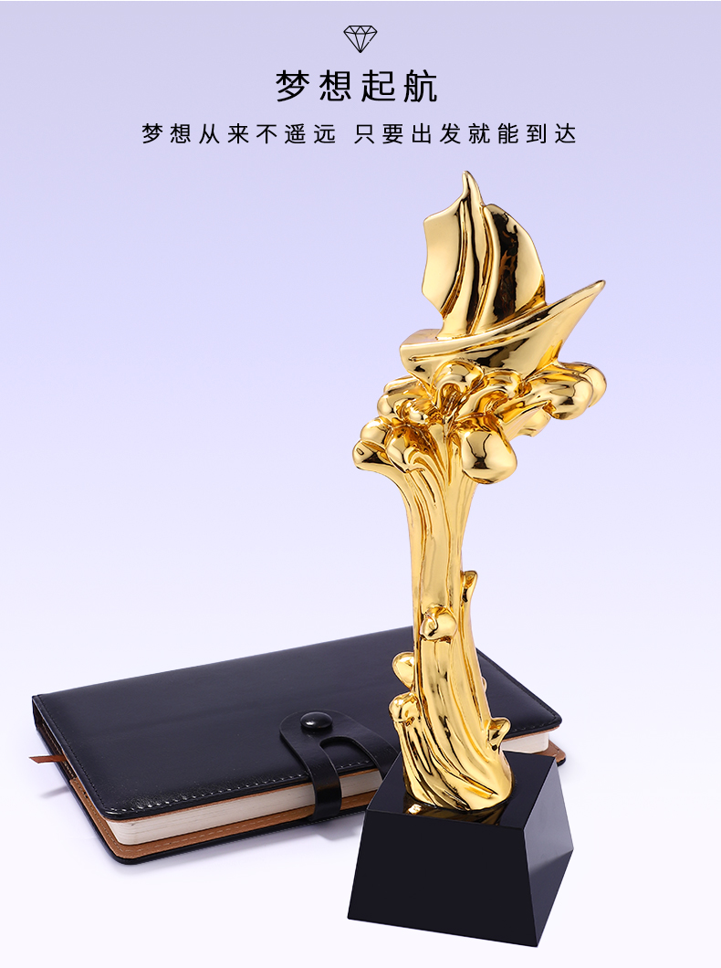 揚帆起航樹脂鍍金獎杯一帆風順精英年會企業優秀員工教師獎杯定制